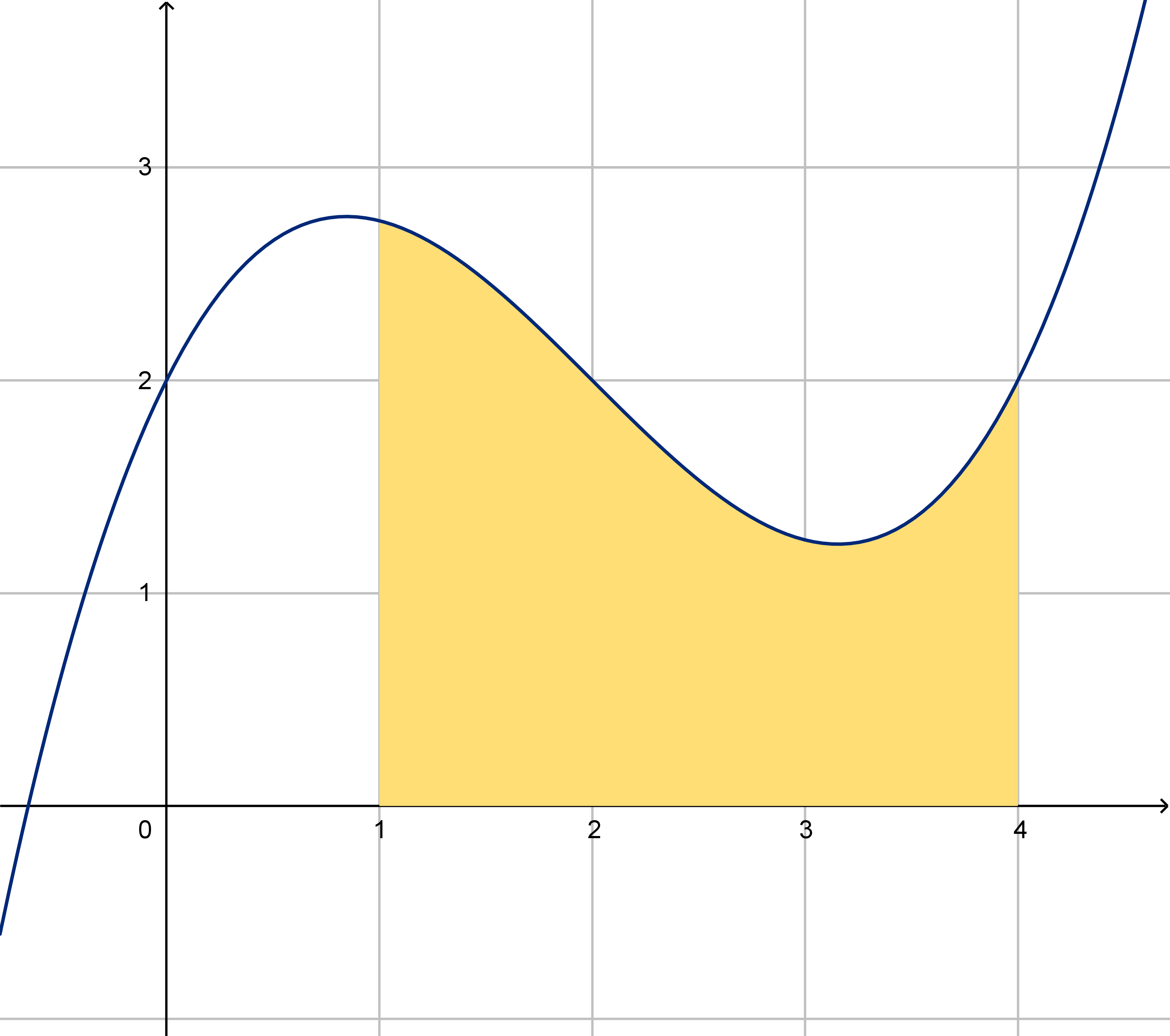f(x) dx computes the signed area between y = f(x) and the x-axis, where area above the axis