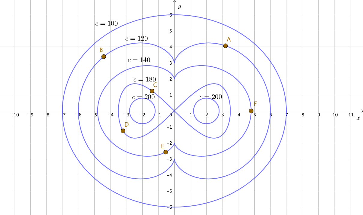 Suppose the curve below is the graph of g(x, y) = k. Use methods from calculus to find and