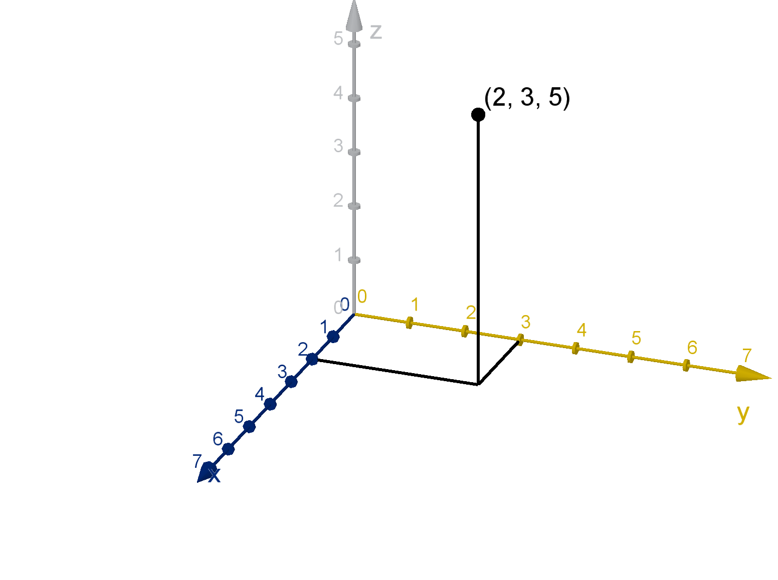 The point (2, 3, 5) is the point displaced from the origin by