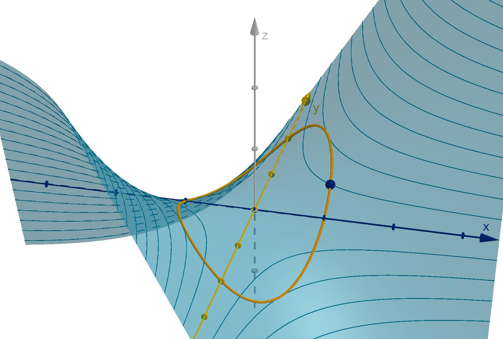 Suppose the curve below is the graph of g(x, y) = k. Use methods from calculus to find and