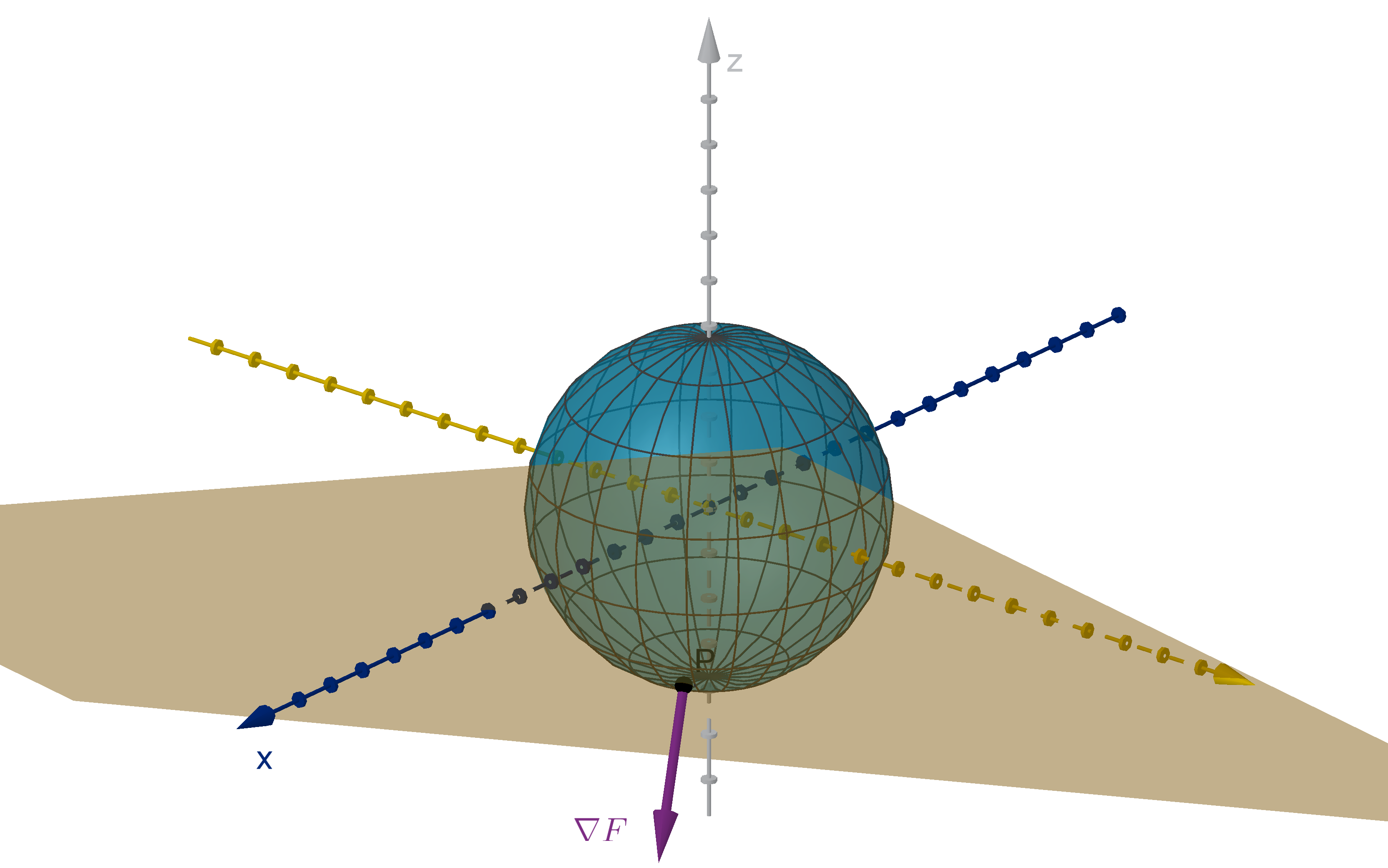 = 25 occurs at P . What can you say about ∇f(P ) and the tangent plane to the sphere